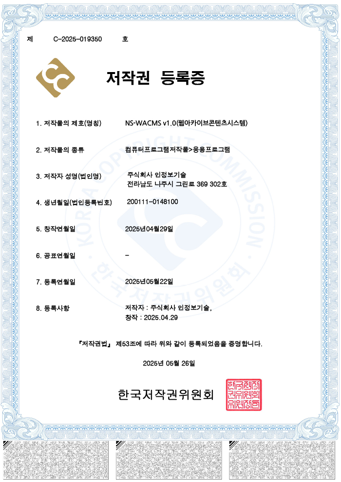 - NS-WACMS(웹 아카이브콘텐츠시스템) 출시