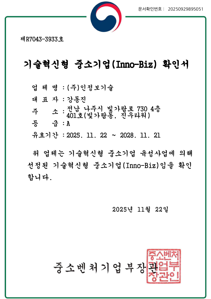 사람을 위한 지식과 기술의 구현인정보기술이 만들어 가겠습니다